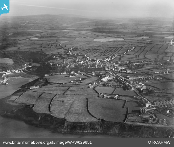 WPW029651 WALES (1929). General view of Fishguard, oblique aerial view. 5"x4" black and white glass plate negative.