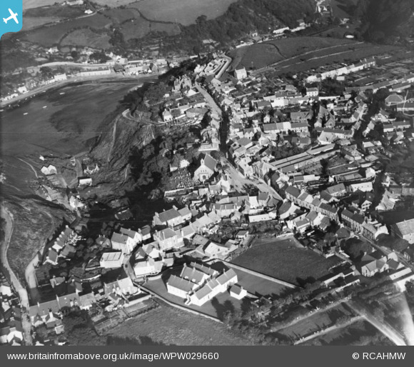 WPW029660 WALES (1929). View of Fishguard, oblique aerial view. 5"x4" black and white glass plate negative.