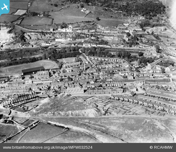 WPW032524 WALES (1930). General view of Pontypridd, showing Taff Vale Park, oblique aerial view. 5"x4" black and white glass plate negative.
