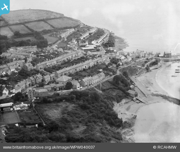 WPW040037 WALES (1932). General view of New Quay, oblique aerial view. 5"x4" black and white glass plate negative.