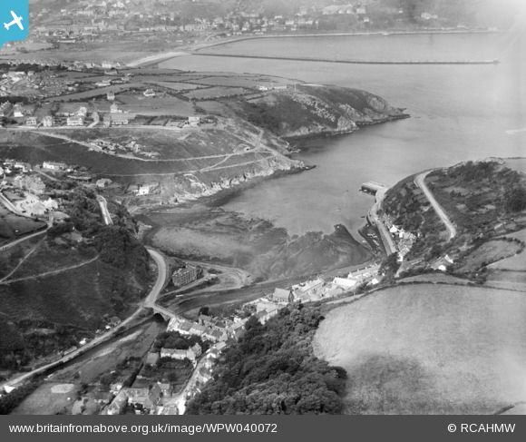 WPW040072 WALES (1932). General view of Fishguard, showing Fishguard Quay, oblique aerial view. 5"x4" black and white glass plate negative.
