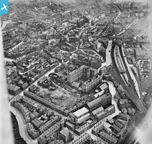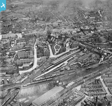 [EPW005028] The Co-operative Clothing Factory alongside All Saints Church and Wallgate Railway Station, Wigan, 1920. This image has been produced from a copy-negative.