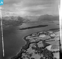 Loch Lomond, River Leven foreground and Balloch Pier to Cameron House...