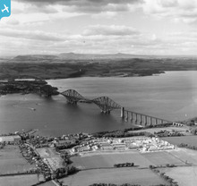 Forth Bridge Dalmeny, West Lothian, Scotland. An oblique aerial photo...