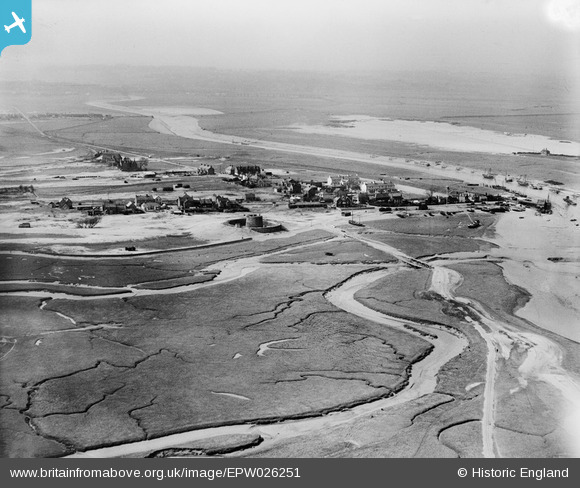 EPW026251 ENGLAND (1929). Martello Tower 28 and the village, Rye Harbour, from the south-east, 1929