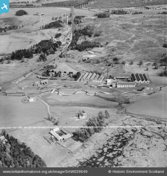 SAW029649 SCOTLAND (1950). Distillery at Tomatin, Craig Morile, Moy and Dalarossie, Inverness-shire, Scotland, 1950. An oblique aerial photograph taken facing south-east.