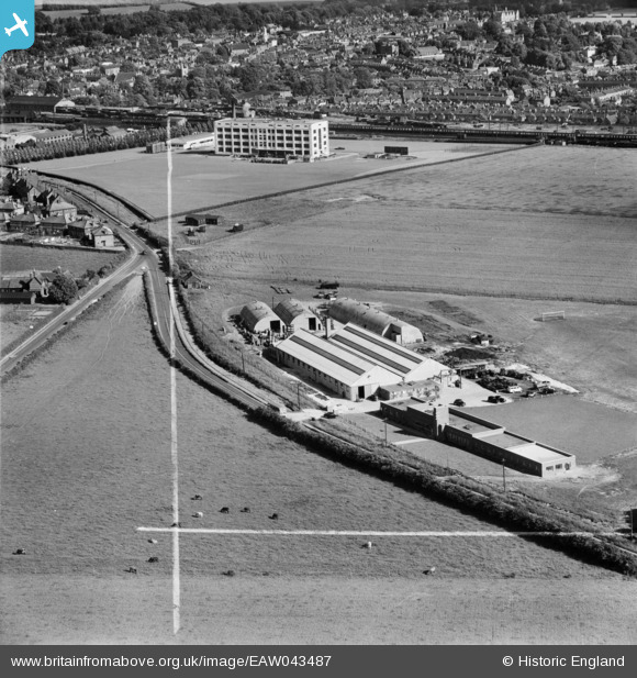 eaw043487 ENGLAND (1952). The Lansing Bagnall Ltd Material Handling Equipment Factory on Kingsclere Road, Basingstoke, 1952. This image was marked by Aerofilms Ltd for photo editing.