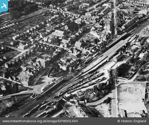 epw001494 ENGLAND (1920). The Railway Station and Commercial Road, Woking, 1920. This image has been produced from a copy-negative.