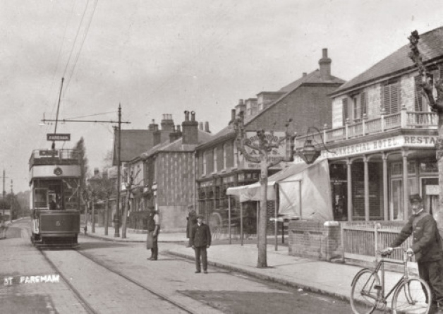 Possibly not Hounslow. If those are tram tracks there do not appear to be any overhead wires,which means it must be within the London County Council area, where conduit current collection was employed, whereas at the time this photo was taken the Hounslow area was served by London United Tramways with conventional overhead collection. |
