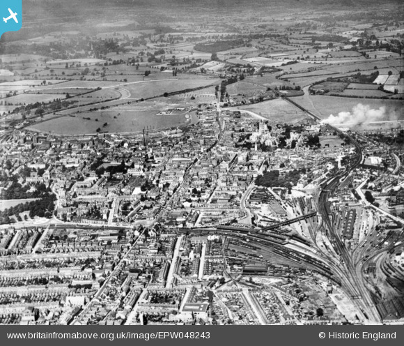 epw048243 ENGLAND (1935). Gloucester Eastgate Railway Station and the city, Gloucester, from the east, 1935. This image has been produced from a copy-negative.